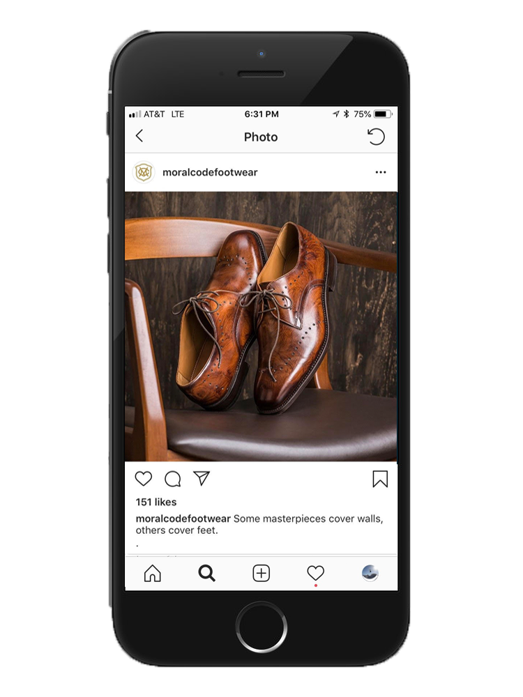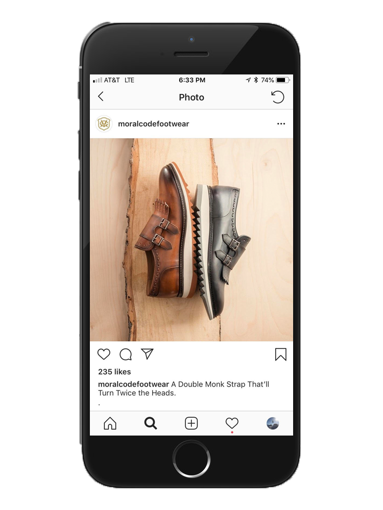 Moral Code is a premium leather men’s footwear and accessory brand that strives to live up to the modern-day man’s sophistication. When they came to us, their products were stylish and modern, but their marketing was not. We revitalized the brand with a new website and social media posts that contained beautiful imagery and crisp, youthful messaging.