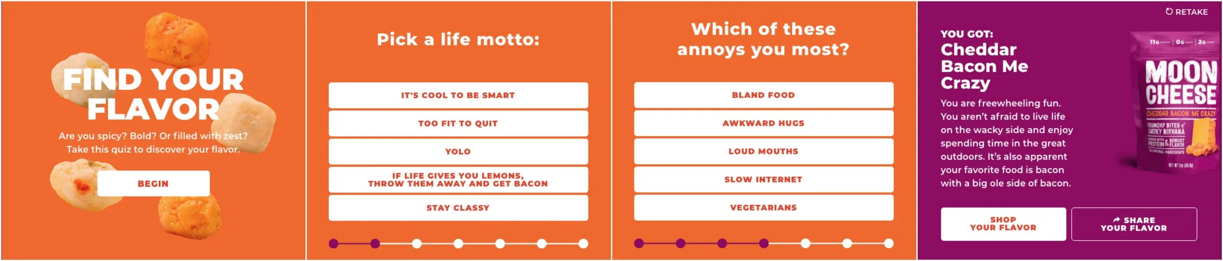 The new website also features a personality quiz that lets visitors discover which Moon Cheese flavor they are and share their flavor on social media.